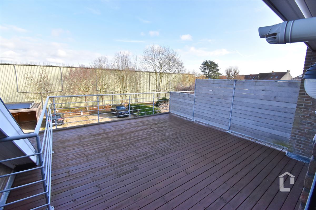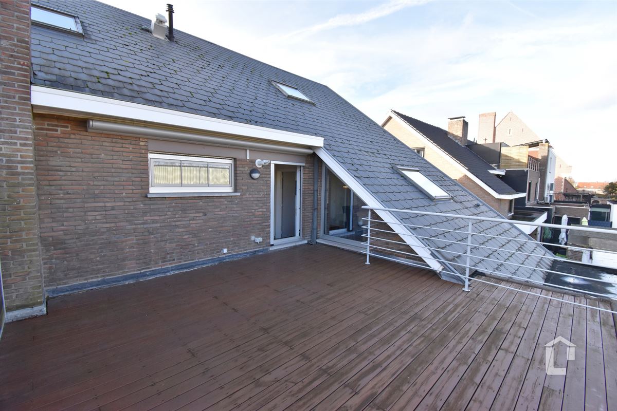 Het appartement bestaat uit een centrale inkomhal. De leefruimte met open keuken geven uit op een prachtig ruim terras achteraan het gebouw. Er is 1 grote slaapkamer die uitkijkt vooraan. Daarnaast is de 2de slaapkamer welke kan dienen als kinderkamer, bureau of berging. De badkamer is voorzien van een moderne inloopdouche en 2 labavo's in meubel. Bij het appartement hoort een carport achteraan het gebouw.