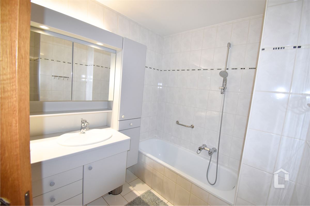 Via de inkomhal heeft u toegang tot het apart toilet. De woonkamer is ruim en lichtrijk, met open keuken die volledig is geïnstalleerd. Aansluitend aan de keuken bevindt zich een praktische berging met aansluiting voor wasmachine en droogkast. Verder biedt de woonkamer toegang tot het zuid-gerichte terras met zicht op de groene tuin. Verder zijn er 3 praktische slaapkamers, waarvan 1 met ingebouwde kast en aparte lavabo voorzien is. De badkamer heeft een ligbad met douche-mogelijkheid en dubbele lavabo in kast. De badkamer heeft eveneens het 2de toilet.